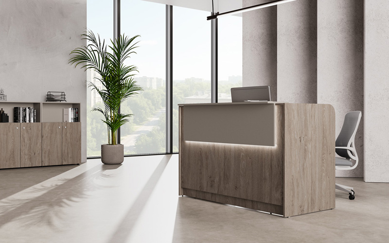 Завершающим штрихом, способным подчеркнуть современный лаконичный облик стойки администратора, стала подсветка декоративных лицевых панелей и цоколя. Комплект подсветки, включенный в модельный ряд серии, позволяет реализовать эту функцию без использования специализированных инструментов и не требует специальных навыков.
