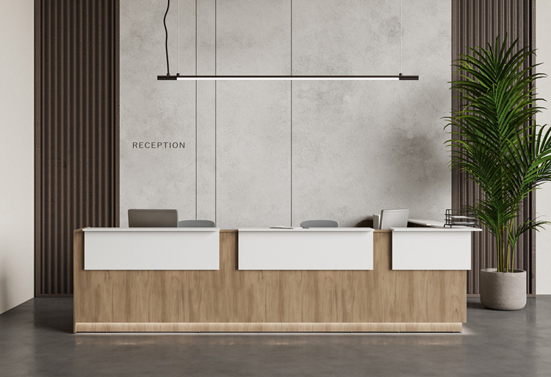 Завершающим штрихом, способным подчеркнуть современный лаконичный облик стойки администратора, стала подсветка декоративных лицевых панелей и цоколя. Комплект подсветки, включенный в модельный ряд серии, позволяет реализовать эту функцию без использования специализированных инструментов и не требует специальных навыков.