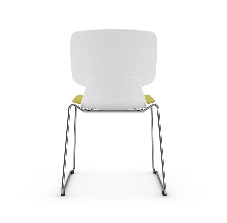 Кресло для посетителей Alex-B на полозьях имеет тканевое сиденье, спинка выполнена из пластика. Каркас выполнен из сплошного металлического прута диаметром 12 мм, цвет — хром, полозья каркаса снабжены четырьмя подпятниками, кресла штабелируются по вертикали.