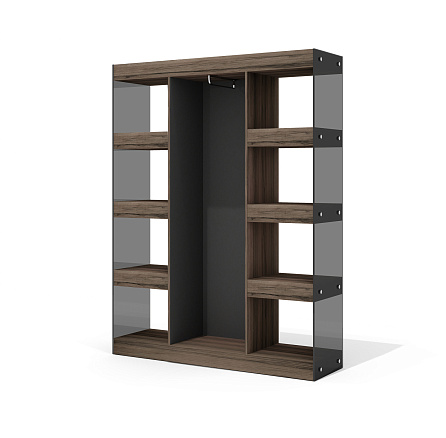 Шкаф-гардероб GS-7 — практичное решение для демонстрации и хранения документов, презентационных материалов и офисных принадлежностей с возможностью скрытого хранения одежды. Конструкция размером 143×42×186 см включает 6 полок, 2 топа и 2 основания, корпус гардеробного отделения  и боковины из закаленного тонированного в массе стекла.