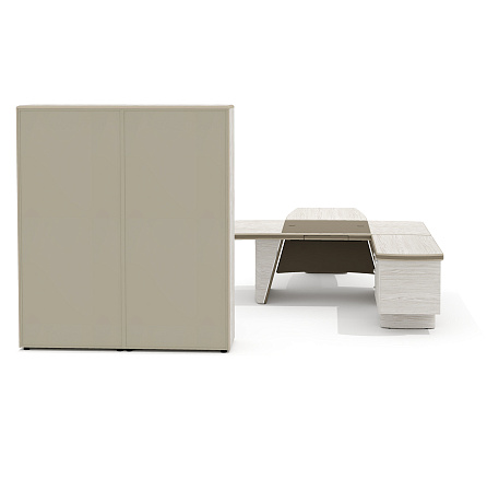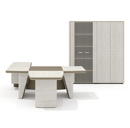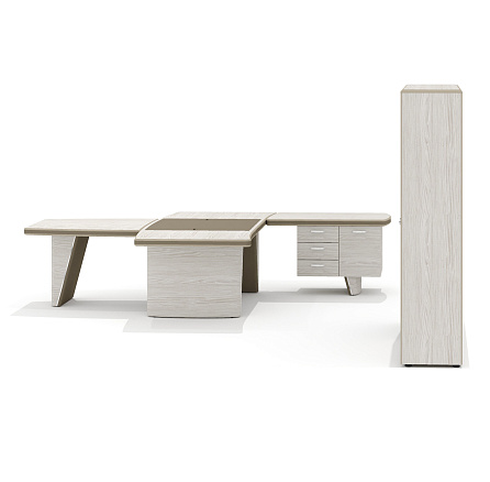 Кабинет руководителя Ньютон / New.Tone дуб серебристый / экокожа «стоун» / 1019