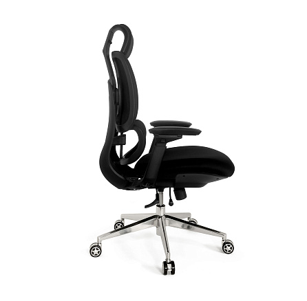 Кресло для руководителя LF0-WY37 — многофункциональное кресло с комбинированной обивкой из ткани и сетки, металлической крестовиной и регулируемыми подлокотниками и подголовником.