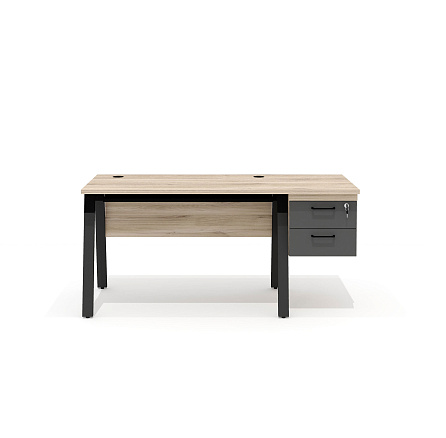 - LM-11R + LF-4 Стол прямой с подвесной тумбой на МК Line дуб Кронберг/антрацит