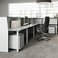 • Металлический каркас столов состоит из двух «L»-образных опор, соединенных траверсом. Траверс и опоры каркаса выполнены из штампованного металла с износостойким порошковым покрытием цвета «алюминий матовый». Метод сборки составных частей металлокаркаса — болтовое соединение. Каждая опора каркаса имеет внутренний кабель-канал для прокладки кабелей подключения.