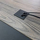 - Модули столов для переговоров снабжены встроенными кабель-каналами с лотками для укладки сетевых фильтров и блоков питания оргтехники. Выходы лотков на плоскости столешниц закрыты заглушками с откидными крышками, выполненными из алюминия с черным полимерным покрытием.