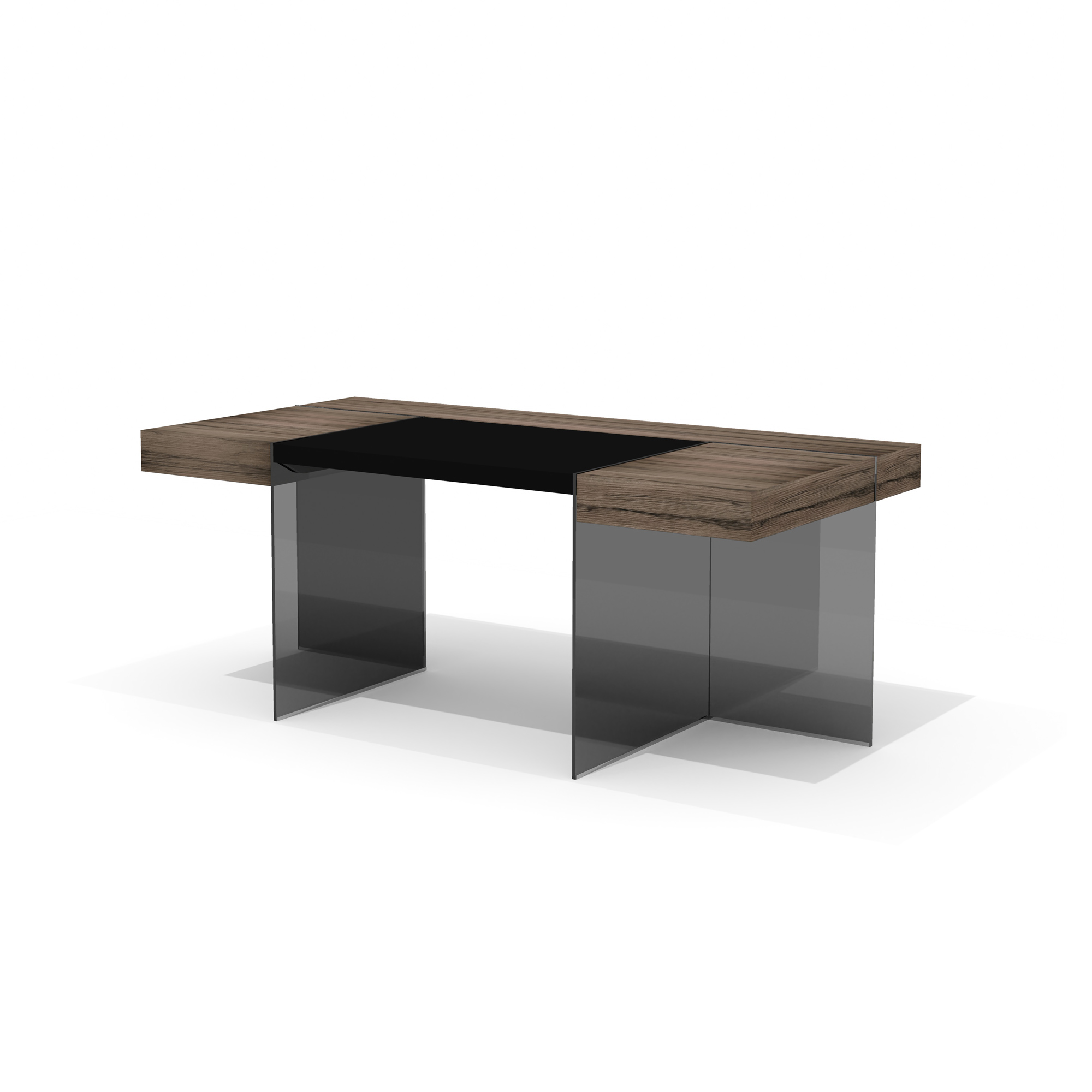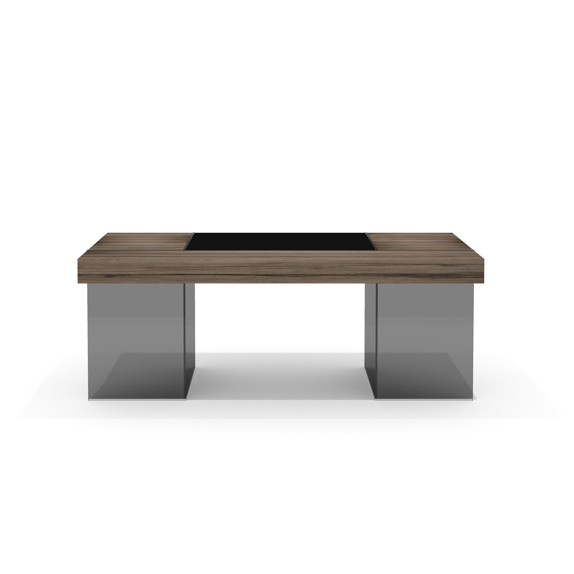 - Опоры столов и боковые панели стеллажей и греденции выполнены из закаленного тонированного в массе стекла толщиной 10 мм.