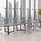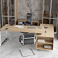 - О-образные опоры, выполненные из полированной до зеркального блеска нержавеющей трубы прямоугольного сечения 60х30 мм и соединенные парой металлических траверсов из трубы 30х30 мм с черным матовым полимерным покрытием. При этом в собранных рабочих столах и приставках расстояние между опорой и столешницей составляет 10 мм.