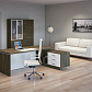 Terra — кабинет со стильным и выразительным дизайном. Скульптурные линии, теплые цвета в сочетании с натуральным рисунком дерева придают офису современный вид, яркие детали кабинета подчеркивают динамичный характер. В основе дизайнерского решения создание максимального комфорта пространства и функциональности офиса.