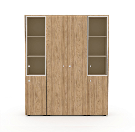 Шкаф для документов и одежды (комплектация 47) Рио Директ швейцарский вяз / беж / стекло тонированное бронза