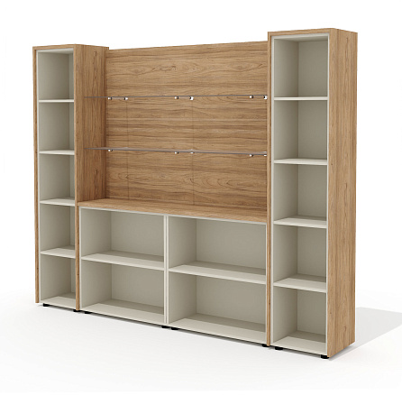 • Наполнение: 2 стеллажа по 4 полки, 2 стеллажа по 1 полке, стеновая декоративная панель.