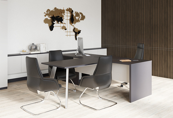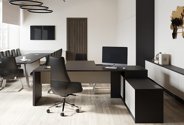 Проект реализован совместно с дилером «МебельСтиль». Мебель для кабинета руководителя угледобывающей компании изготовлена по индивидуальному проекту на фабрике «МебельСтиль».